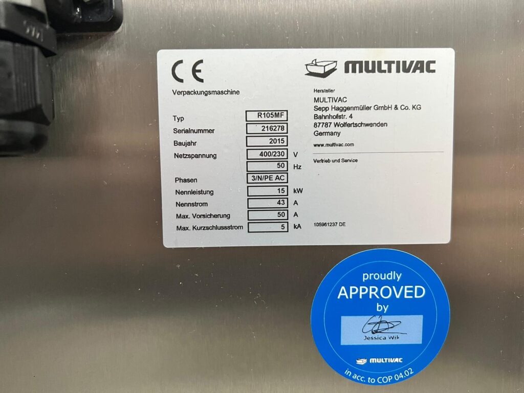 La envasadora Multivac R105 es del año 2015 y está en perfecto estado con apenas 20 horas de funcionamiento en producción.
